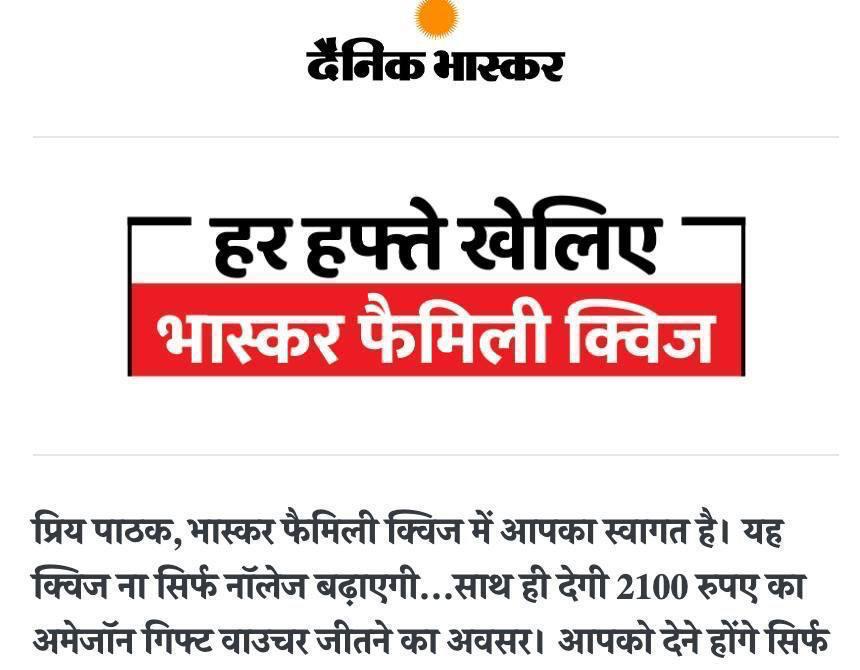Dainik Bhaskar Family Quiz & Sport Quiz : Play & Win ₹2100 Free Amazon Vouchers