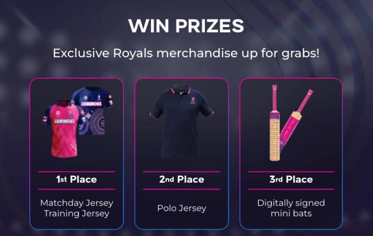 It’s exciting to be at the top of the leaderboard, but the gifts make it even better. The top three players each week will win special Rajasthan Royals gear. Here’s what the winners will find: